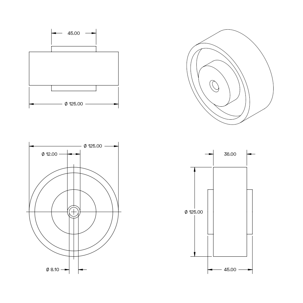 125 mm löst elastiskt gummihjul, hjulkropp av nylon - RB1-125