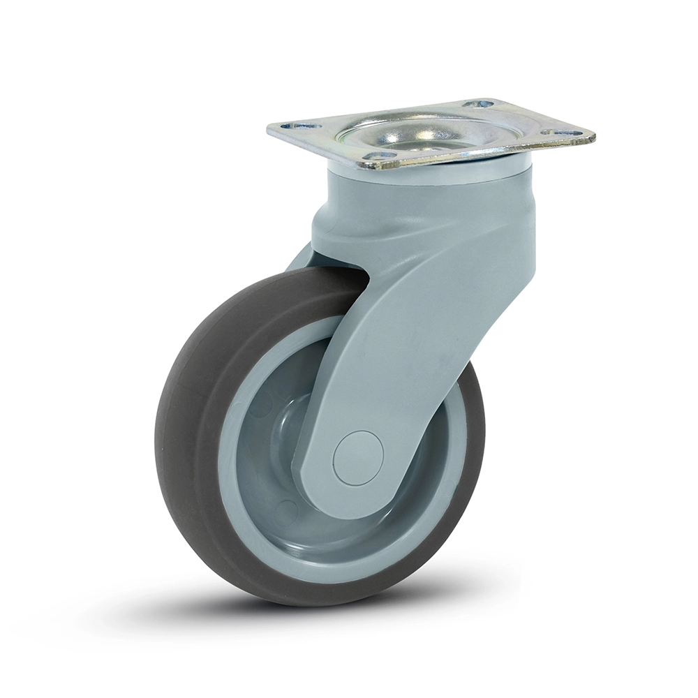 Svängbart hjul i grå plast med topplatta - 100 mm - 100 kg