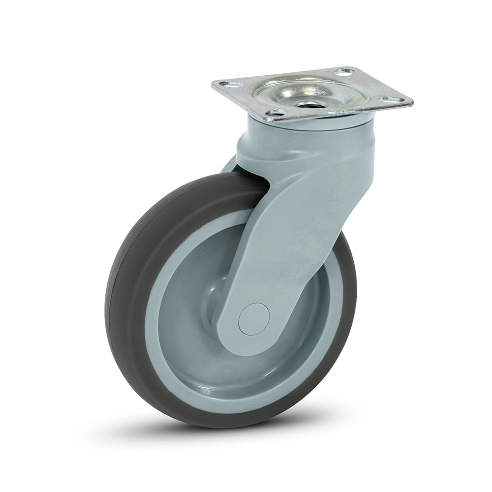 Svängbart hjul i grå plast med topplatta - 125 mm - 100 kg