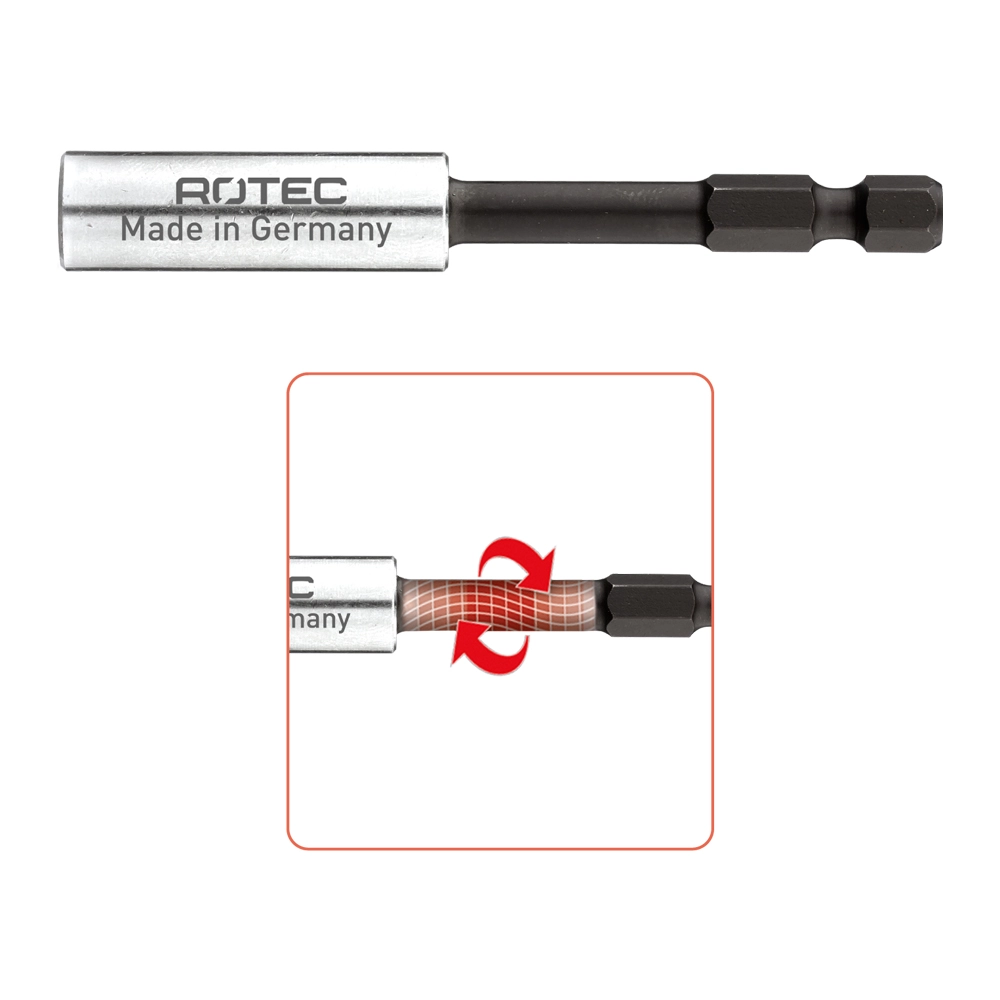 Med bitshållaren kan du enkelt sätta i olika bits på din skruvmejsel eller borrmaskin. De magnetiska egenskaperna ger ett fast grepp om bitsen, medan C-ringen ger extra stabilitet.