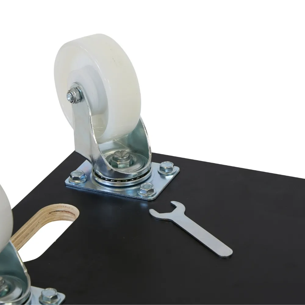 Möbelrulle med slitstarka nylonhjul, två bromsade länkhjul, 575 mm x 350 mm och en lastkapacitet på 400 kg.