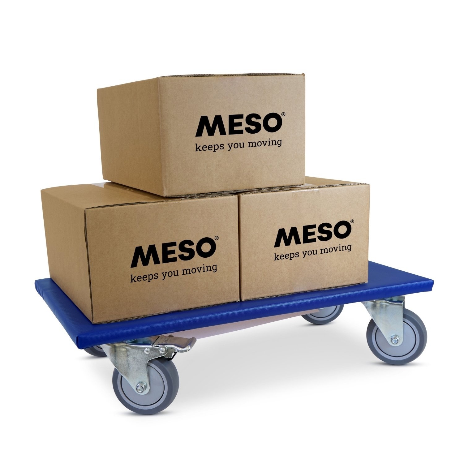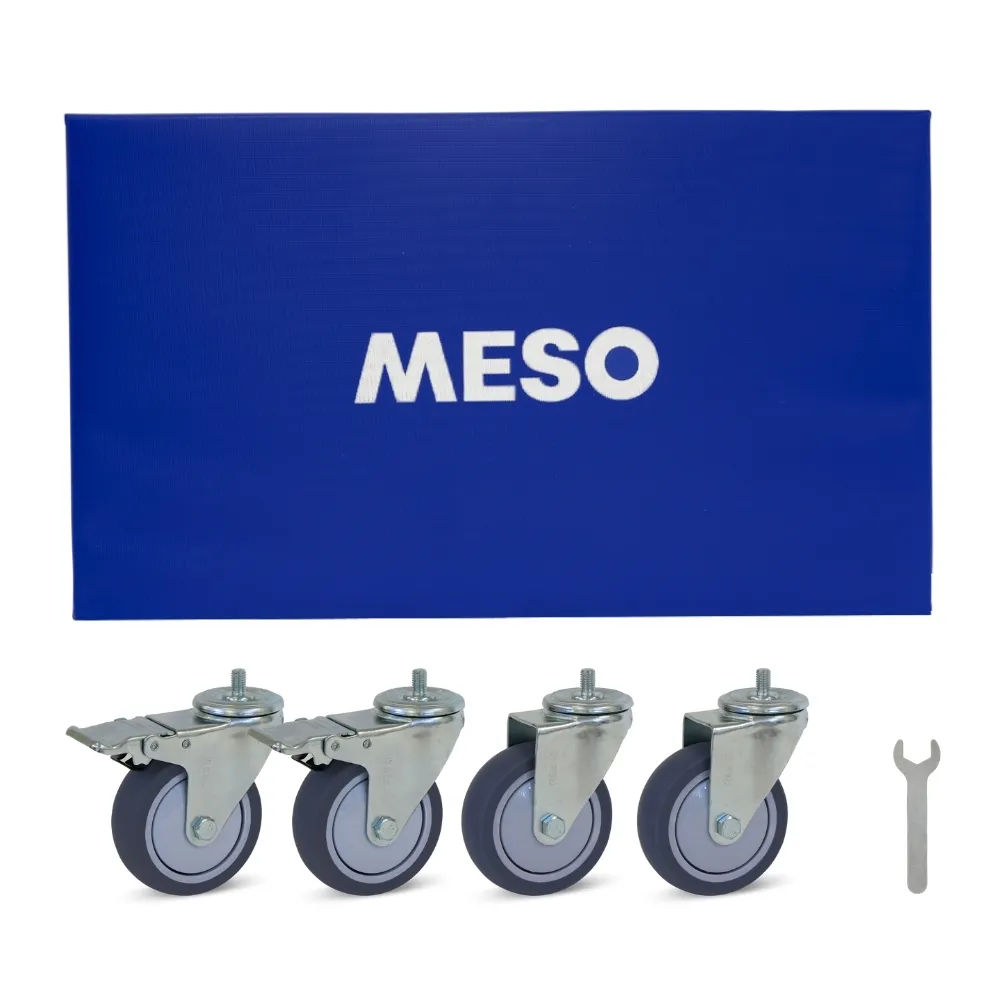 Möbelrulle med tysta TPR-hjul, två bromsade länkhjul, 600 mm x 350 mm och en lastkapacitet på 350 kg.