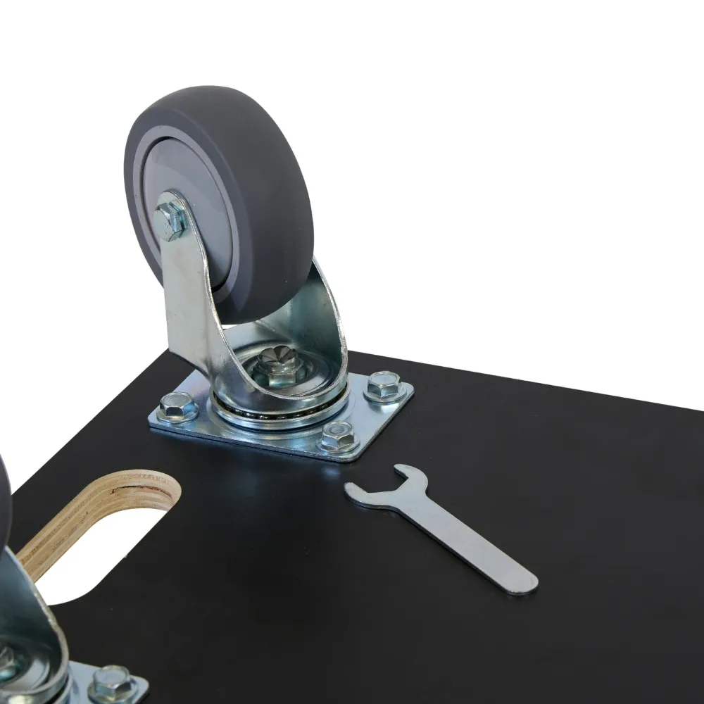 Denna möbeldolly är utrustad med robusta TPR-hjul och har en lastkapacitet på upp till 270 kg. Tack vare sin kompakta storlek på 575 x 350 mm är den här dollyn perfekt för daglig användning i hemmet, verkstaden eller lagret. De termoplastiska gummihjulen rullar smidigt över olika ytor och lämnar inga märken, inte ens på ömtåliga golv som laminat eller parkett.