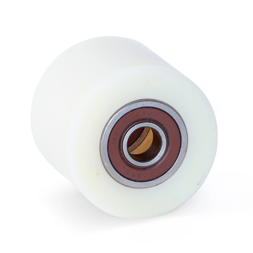 Pallrulle i nylon, finns i olika diametrar, lastkapaciteter och axelhål.