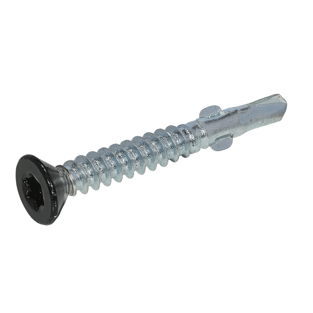 Proftec erbjuder ett paket med 100 st vingskruvar/portramskruvar, med måtten 4,2x32mm, försedda med en Torx 20-drivning. Skruvarna är förzinkade för lång livslängd och har ett brunt huvud.