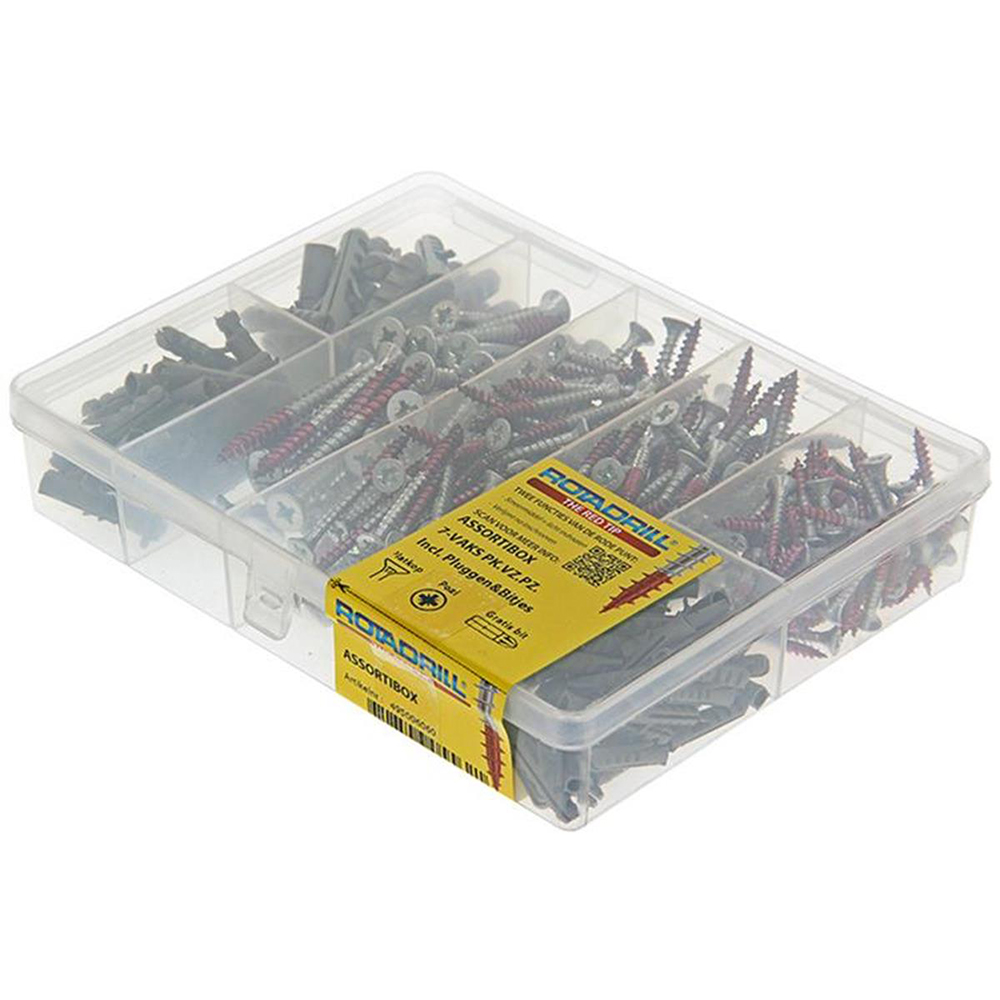 Rotadrill erbjuder ett sortiment av lådor med Torx-skruvar och matchande pluggar. Dessa skruvar har ett platt huvud och är helt gängade. Ytan på varje skruv är galvaniserad för extra hållbarhet och korrosionsbeständighet. Sortimentet är mångsidigt, vilket gör det lämpligt för olika fästapplikationer i bygg- eller gör-det-själv-projekt. Satsen är tydligt organiserad, vilket gör att rätt skruv- och pluggkombination är lätt tillgänglig. Den här produkten är idealisk för användare som behöver tillförlitliga och säkra fästlösningar. Hela sortimentet är utformat för att bibehålla prestanda och ge en effektiv verktygssats för professionellt eller privat bruk.