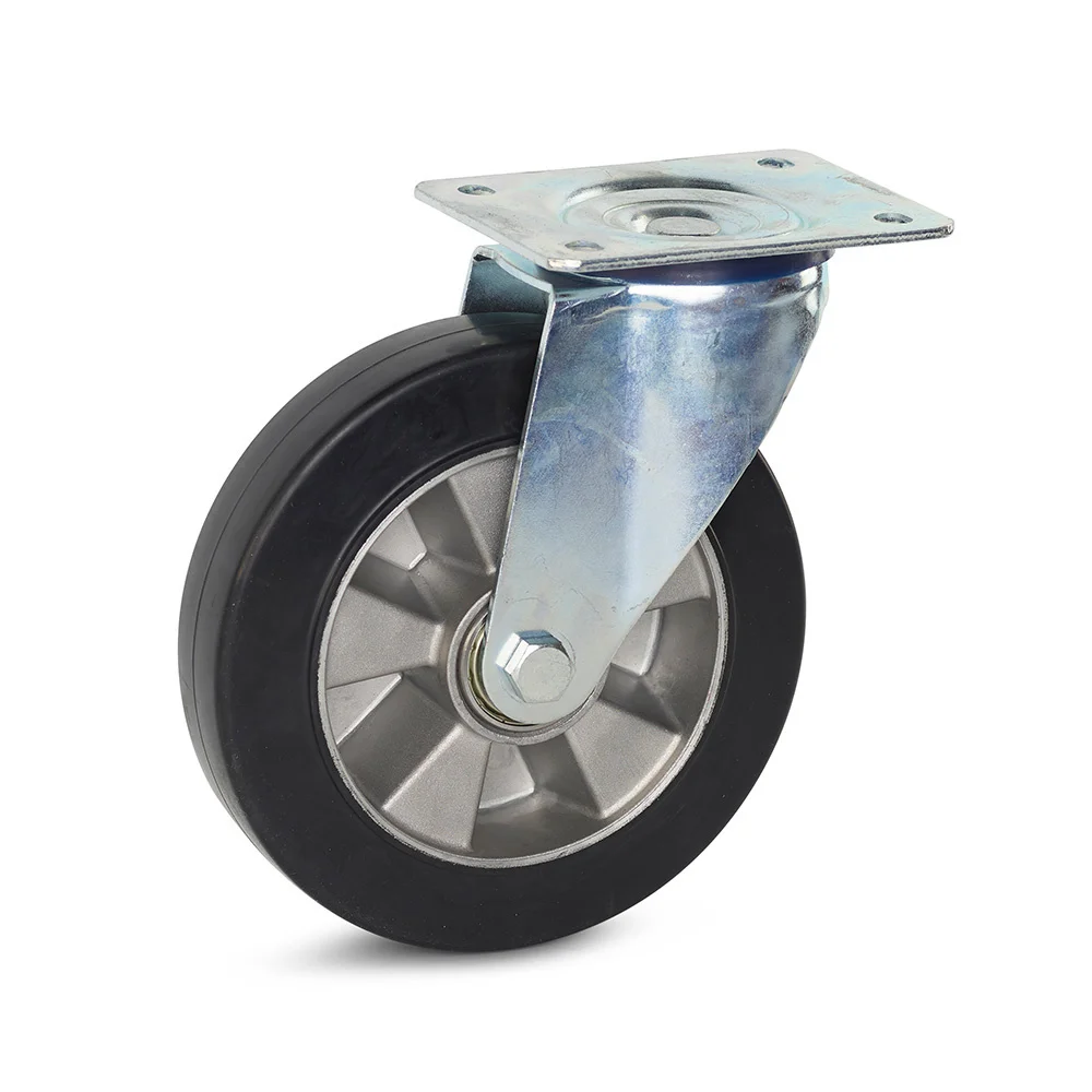 Länkhjul i svart elastiskt gummi med topplatta - 200 mm - 450 kg
