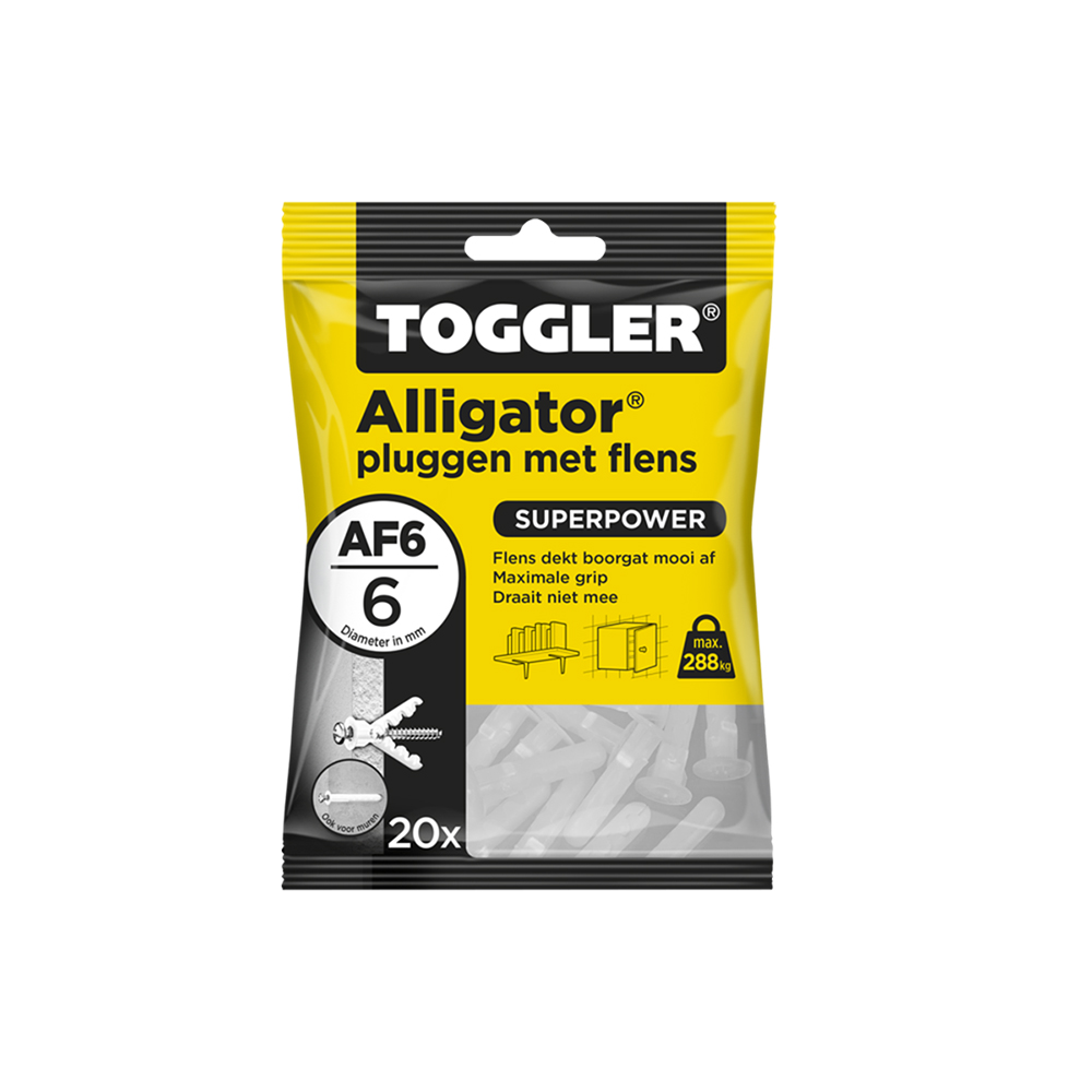 Toggler krokodilplugg med fläns är ett specialiserat fästelement med en diameter på 6 mm. Produkten levereras i en förpackning med 20 st. och är utformad för att ge en säker förankring i olika material, t.ex. gipsskivor, betong och tegel. Pluggen har en fläns som ger extra stöd och säkerställer tillförlitlig fastsättning vid montering av föremål. Dessa krokodilpluggar är lämpliga för både DIY-projekt och professionell användning och är kända för sin styrka och mångsidighet. Toggler 6 mm krokodilplugg är idealisk för upphängning av tavlor, hyllor eller andra fästanordningar och erbjuder en pålitlig lösning för alla dina förankringsbehov.