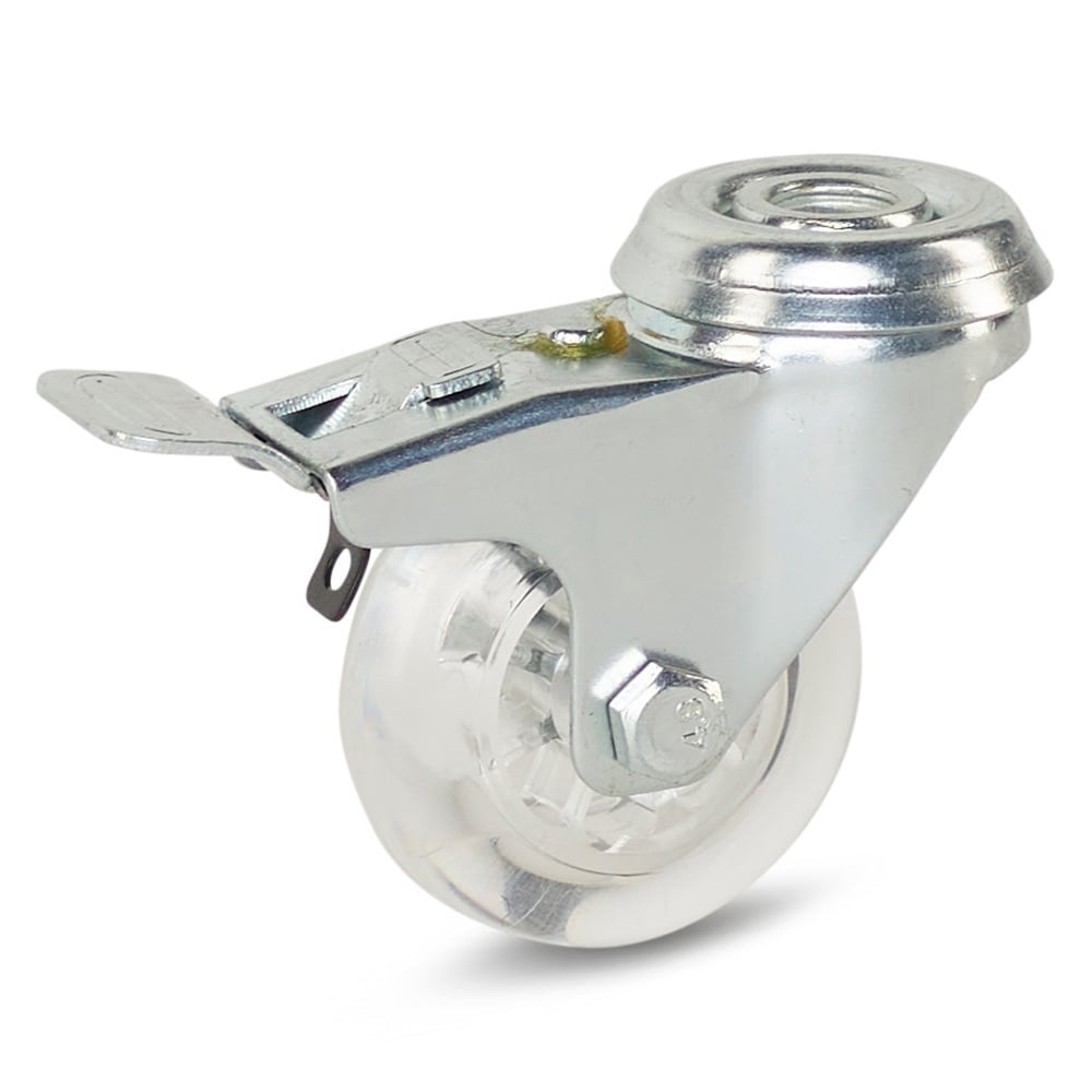 Transparent möbelhjul bromsat med centralhål - 50mm - 50kg