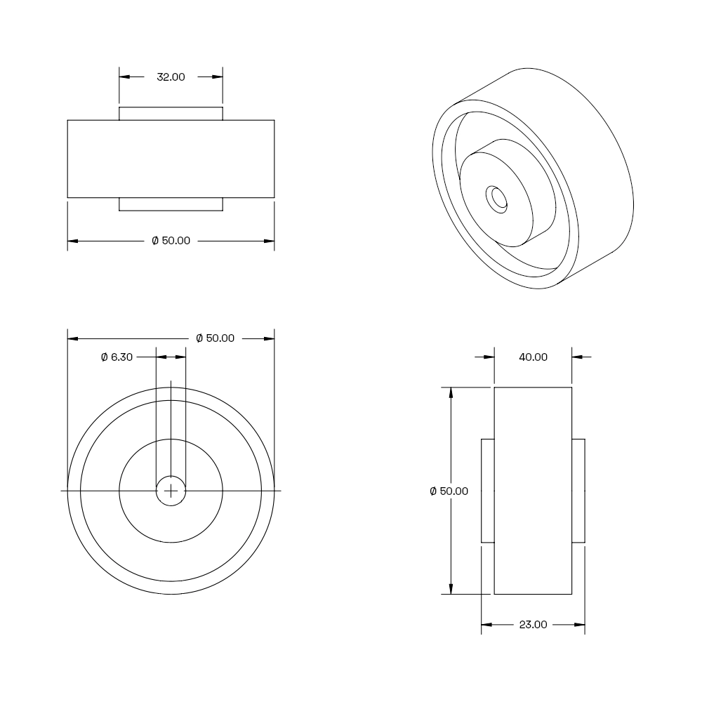 Vagnhjul - 50mm - 40kg