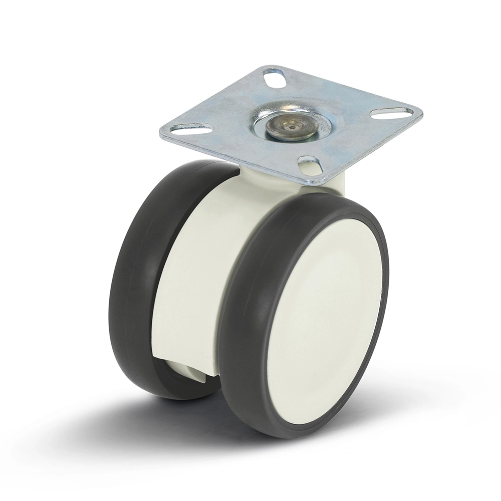 Vitt dubbelt möbelhjul med topplatta - 75mm - 80kg